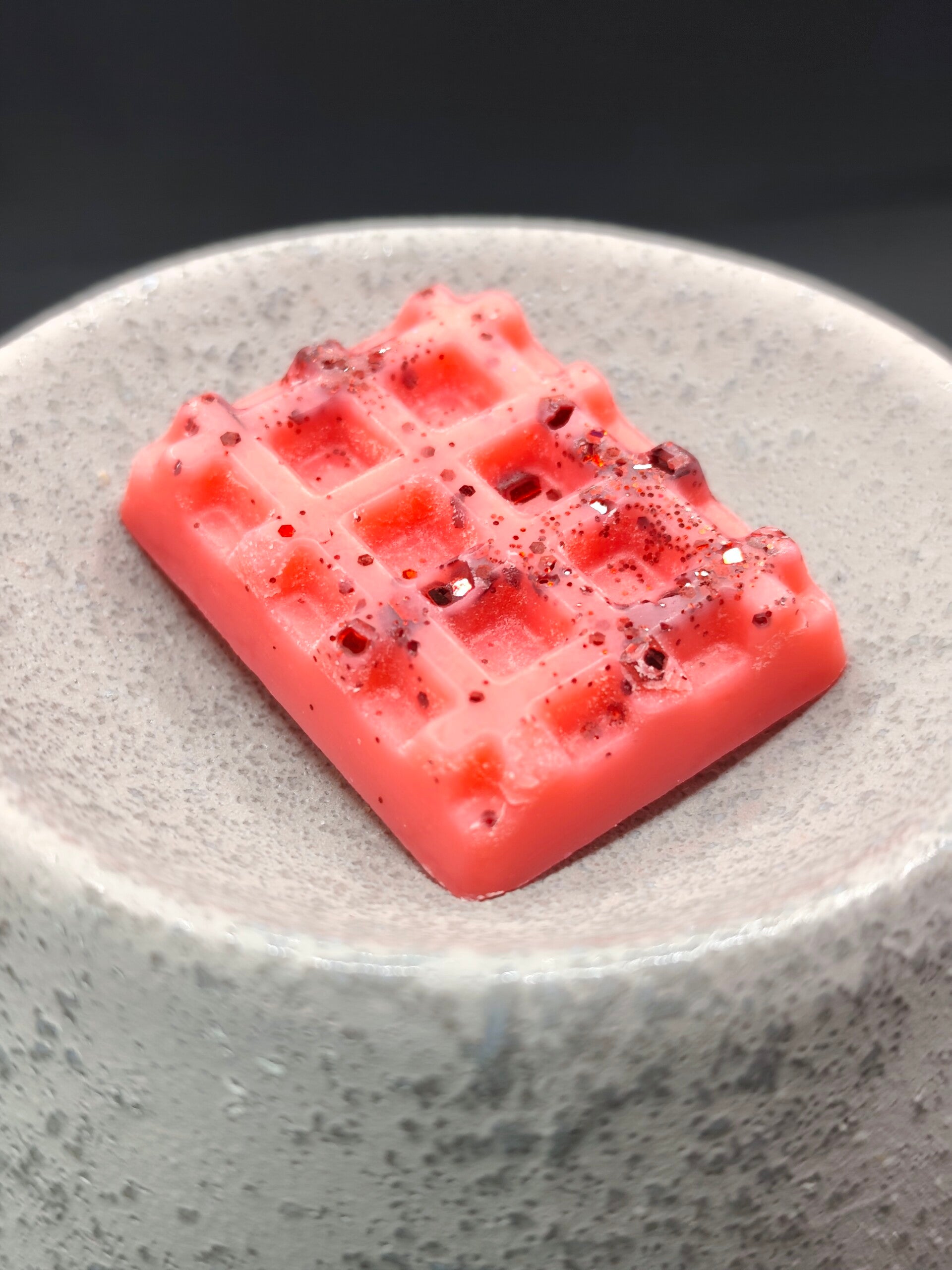 Non comestible – à ne pas avaler (même si son parfum rappelle la pomme d’amour croquée à la fête foraine 😋).